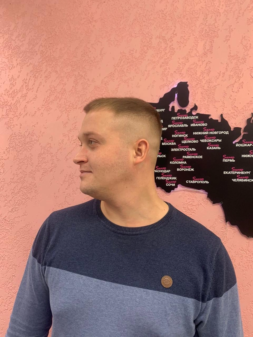 Мастер встречает клиента, уточняет, какую стрижку он хочет, уточняет пожелания по длине, форме и стилю.